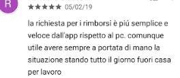 Infine, molto apprezzata anche la funzione di riconoscimento delle impronte digitali, aggiunta nell’ultimo aggiornamento, e la possibilità di caricare le foto di fatture e documenti, che snellisce la procedura di richiesta rimborso, perché non è più necessario effettuare delle scansioni o inviare i documenti per posta.